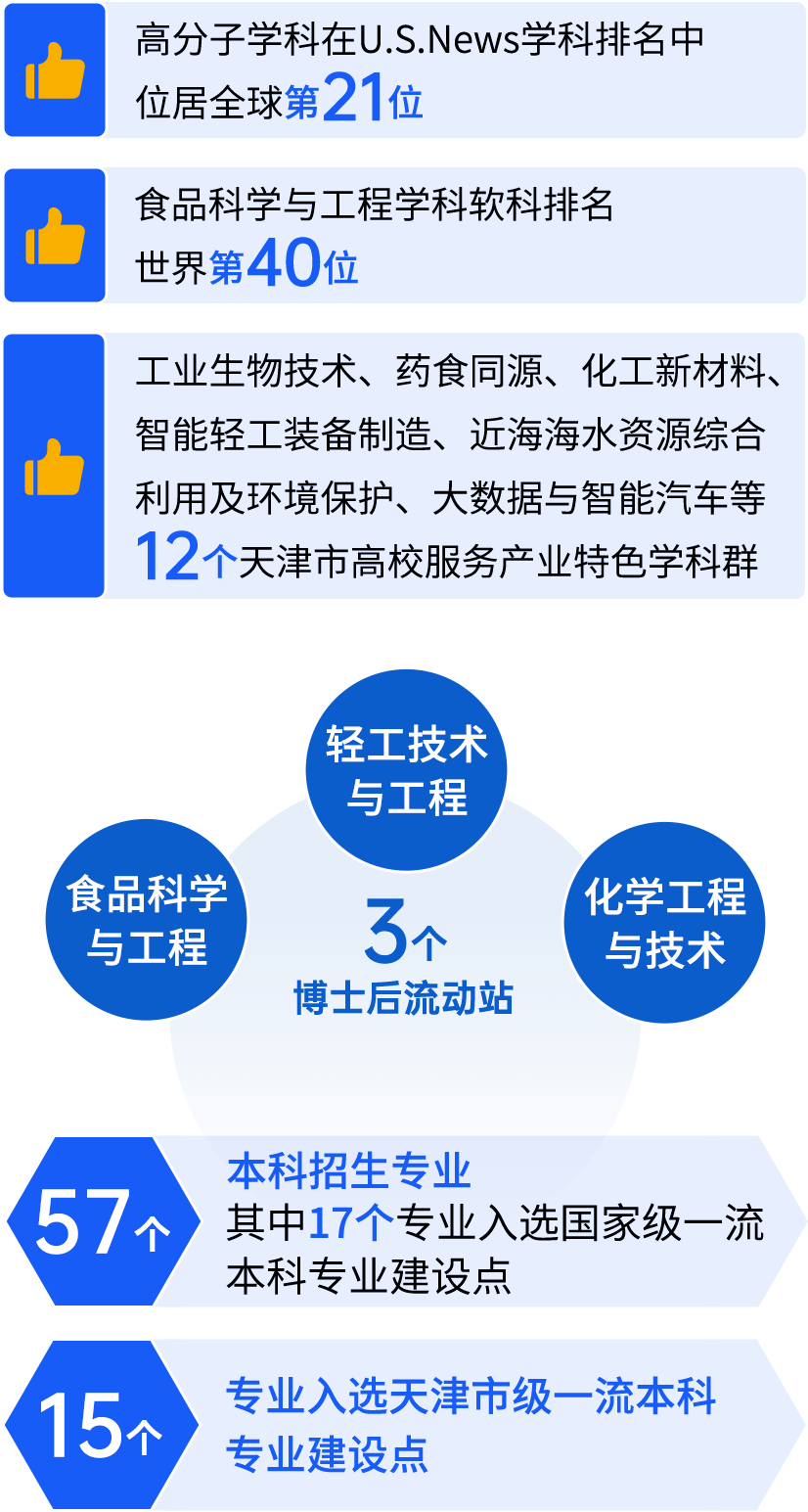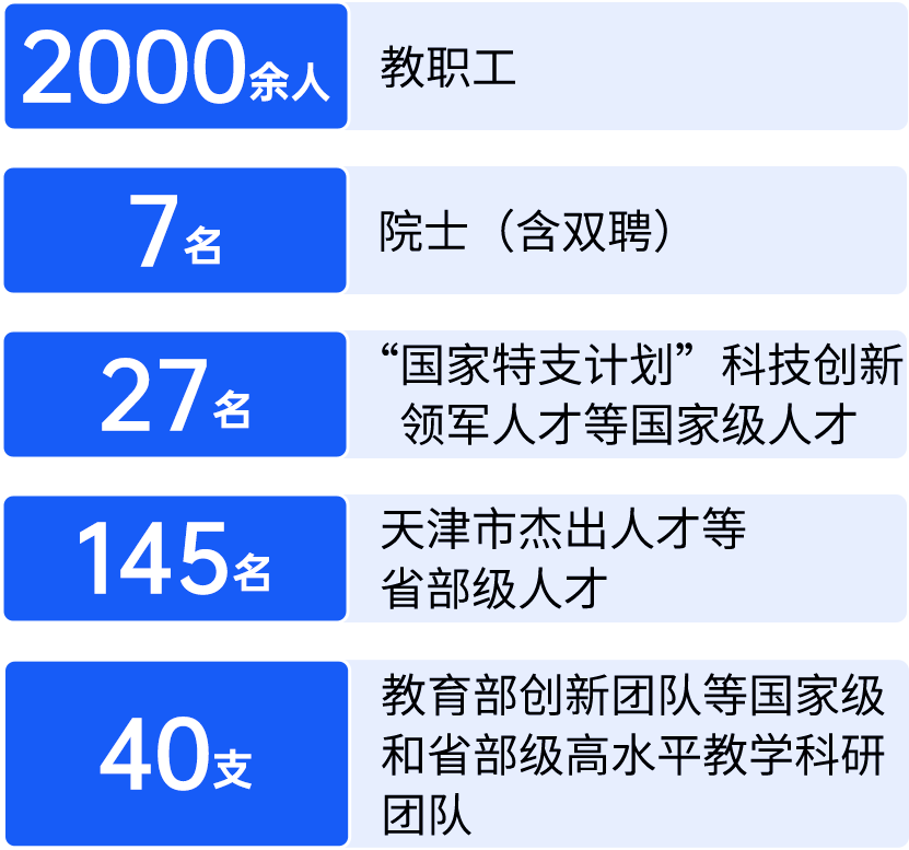 天津科技大学(Tianjin University of Science & Technology),始建于1958年,是一所具有深厚积淀,特色鲜明,学术水平卓越,学科高地多点开花,并具有丰富国家级科研平台和雄厚的师资力量的高水平特色大学。学校扎实落实教育、科技、人才一体推进和天津“十项行动”等重要指示和精神,践行《天津科技大学关于加快推进高质量内涵发展的意见》,实施“先锋计划” 优师强教行动,坚定人才强校战略。建成了一支以国家高层次人才为学术带头人,以教学科研骨干和优秀青年人才为后备的高素质人才队伍培育和发展体系。学校积极从海内外引进和汇聚优秀人才,构建人才引进和培育相结合的可持续发展体系,为优秀人才提供长期稳定、丰富多元的支持。